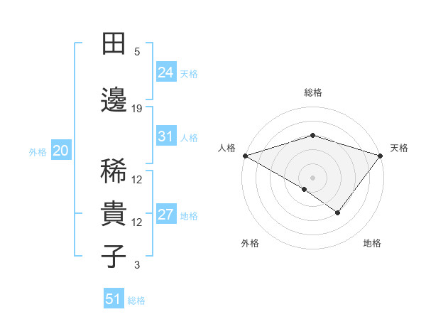 田邊 稀貴子さんを姓名の画数から五運を鑑定