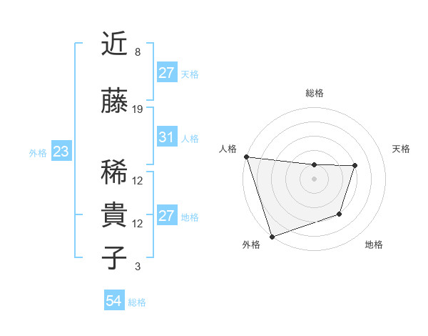 近藤 稀貴子さんを姓名の画数から五運を鑑定