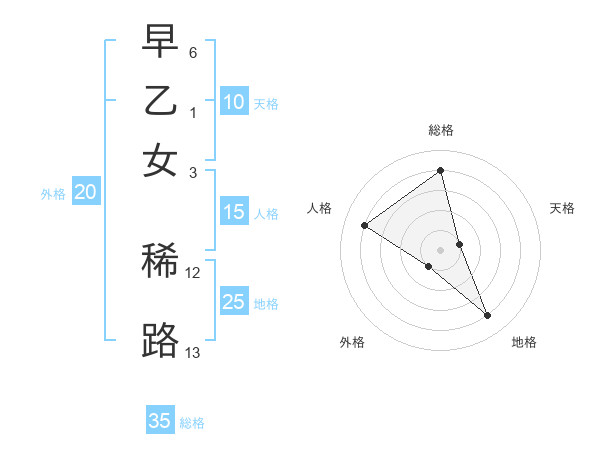 早乙女 稀路さんを姓名の画数から五運を鑑定