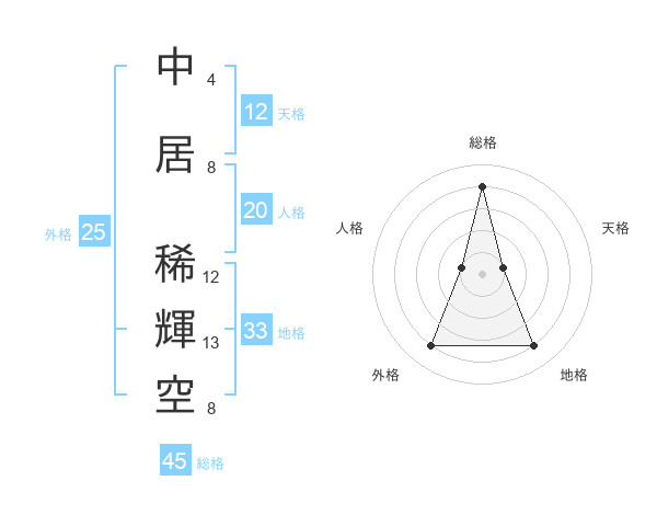 中居 稀輝空さんの外格は25画の4点!