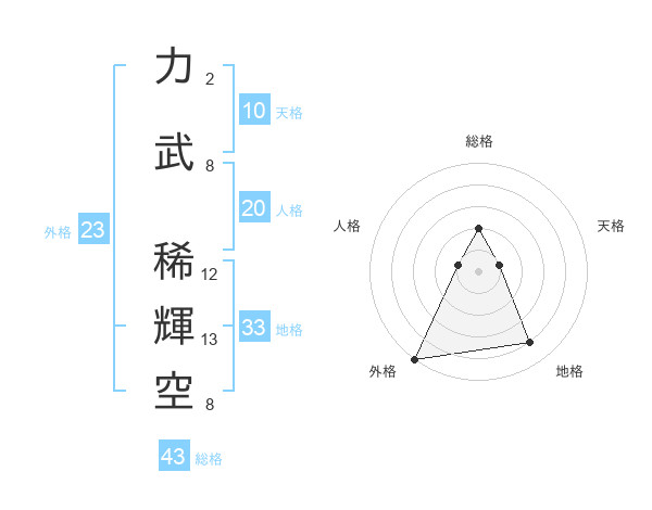 力武 稀輝空さんを姓名の画数から五運を鑑定