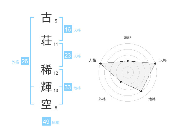 古荘 稀輝空さんを姓名の画数から五運を鑑定