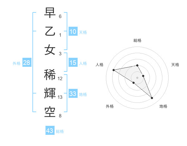 早乙女 稀輝空さんを姓名の画数から五運を鑑定