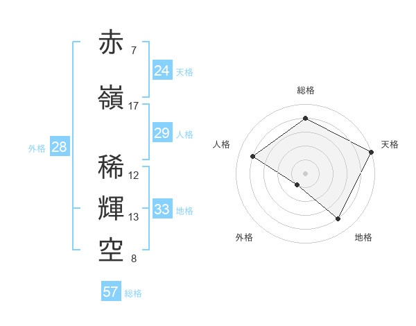 赤嶺 稀輝空さんの総格は57画の4点!