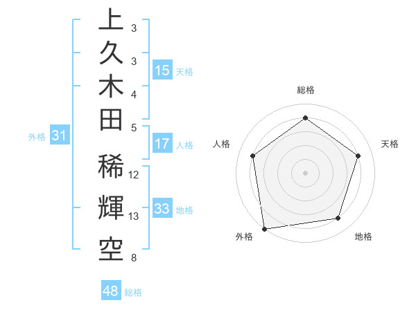 上久木田 稀輝空さんを姓名の画数から五運を鑑定