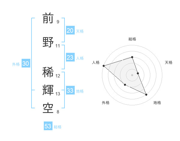 前野 稀輝空さんを姓名の画数から五運を鑑定