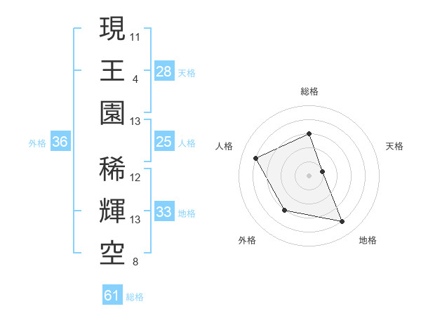 現王園 稀輝空さんを姓名の画数から五運を鑑定