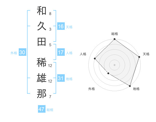 和久田 稀雄那さんを姓名の画数から五運を鑑定
