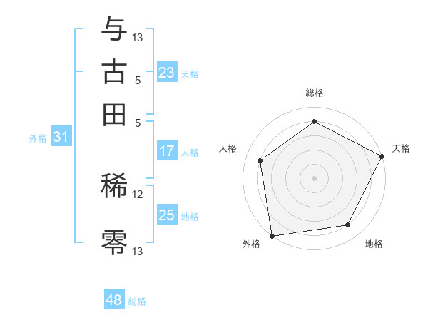 与古田 稀零さんを姓名の画数から五運を鑑定