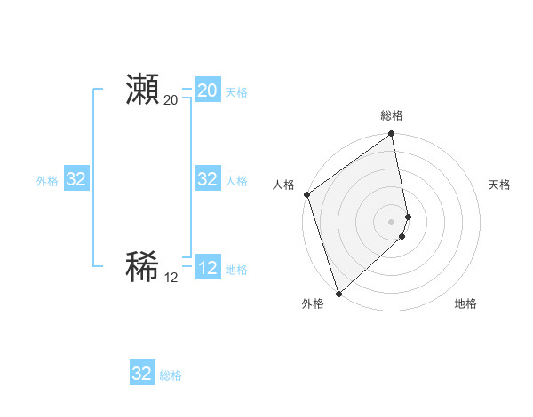 瀬 稀さんの天格は20画の1点!
