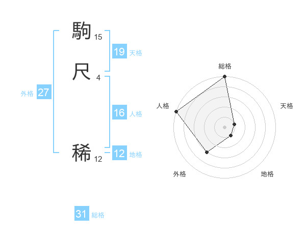 駒尺 稀さんの総格は31画の5点!