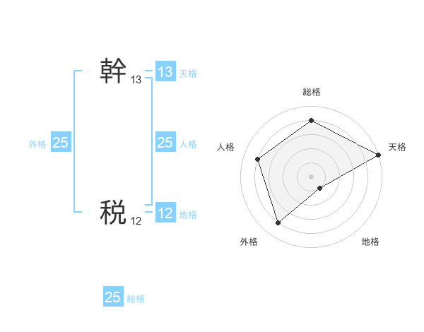 幹 税さんの総格は25画の4点!