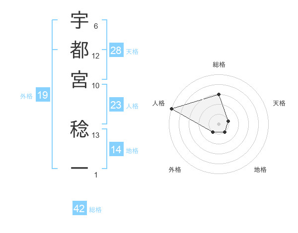 宇都宮 稔一さんを姓名の画数から五運を鑑定