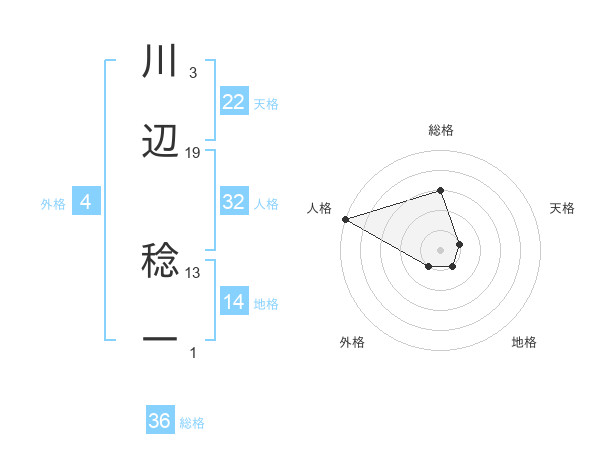 川辺 稔一さんの総格は36画の3点!