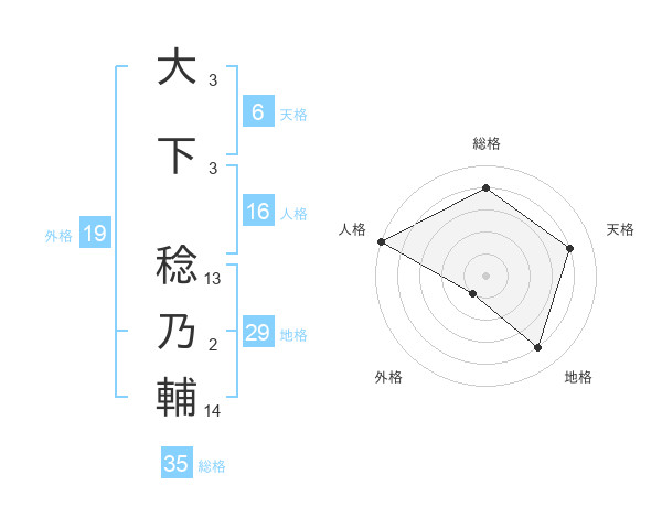 大下 稔乃輔さんを姓名の画数から五運を鑑定