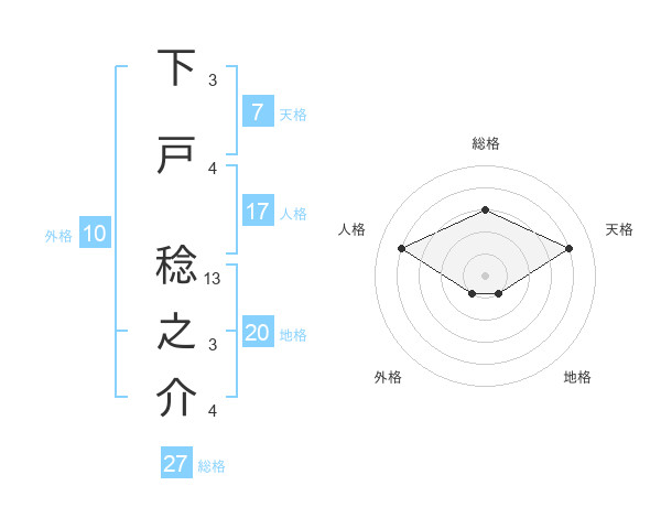下戸 稔之介さんを姓名の画数から五運を鑑定
