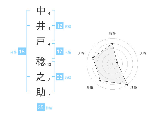 中井戸 稔之助さんを姓名の画数から五運を鑑定