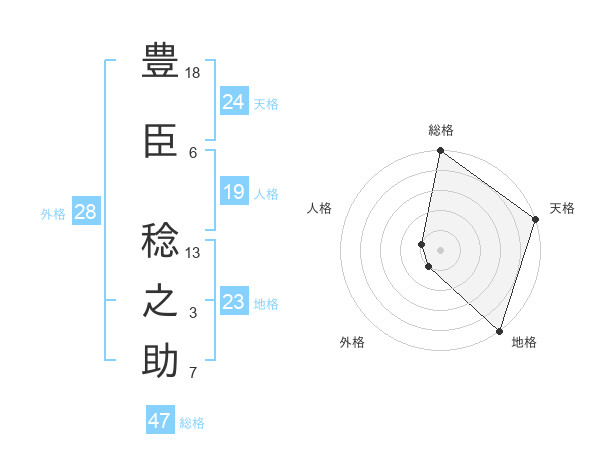豊臣 稔之助さんを姓名の画数から五運を鑑定