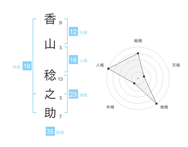 香山 稔之助さんを姓名の画数から五運を鑑定