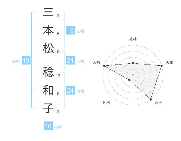 三本松 稔和子さんを姓名の画数から五運を鑑定