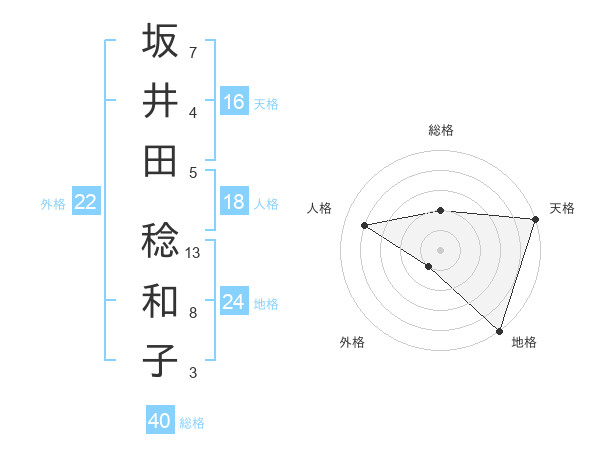 坂井田 稔和子さんを姓名の画数から五運を鑑定