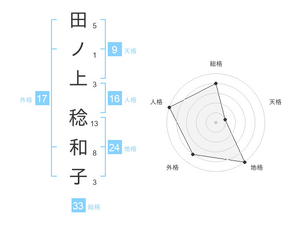 田ノ上 稔和子さんを姓名の画数から五運を鑑定