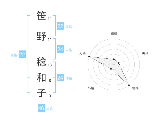 笹野 稔和子さんを姓名の画数から五運を鑑定