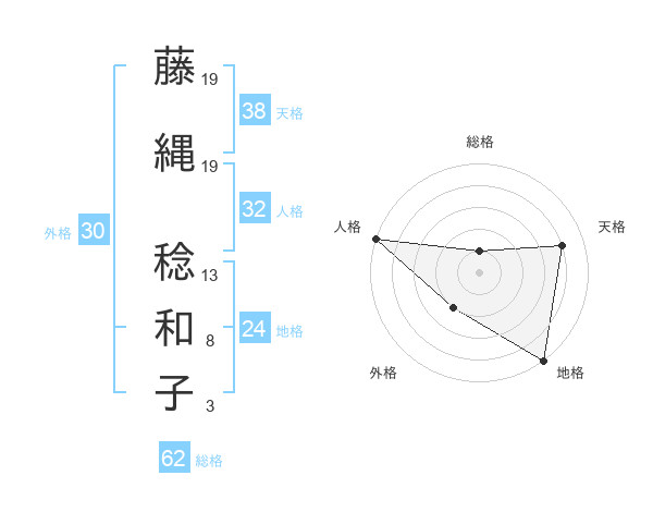 藤縄 稔和子さんの天格は38画の4点!