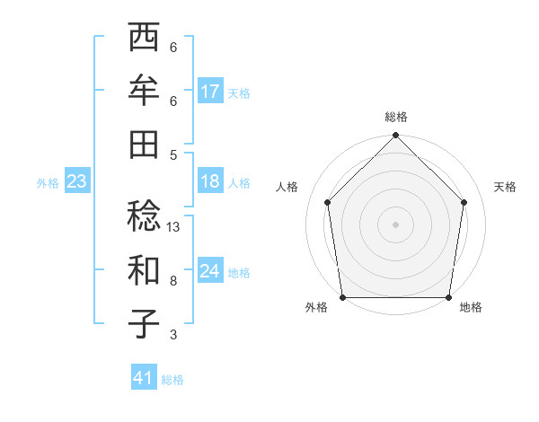 西牟田 稔和子さんを姓名の画数から五運を鑑定