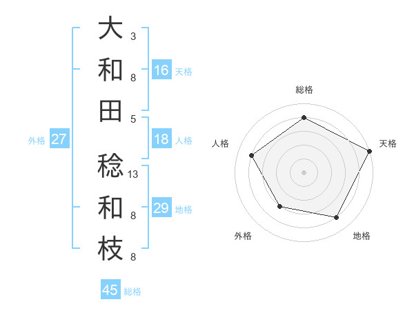 大和田 稔和枝さんを姓名の画数から五運を鑑定