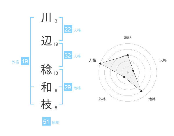 川辺 稔和枝さんを姓名の画数から五運を鑑定