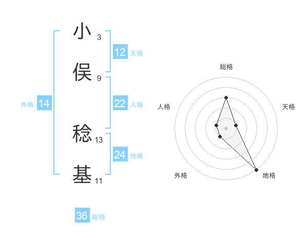 小俣 稔基さんを姓名の画数から五運を鑑定