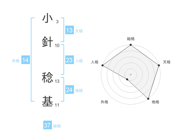 小針 稔基さんの総格は37画の5点!