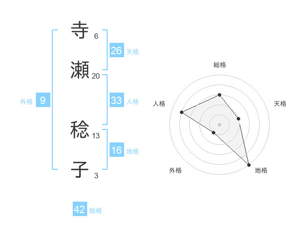 寺瀬 稔子さんの総格は42画の3点!