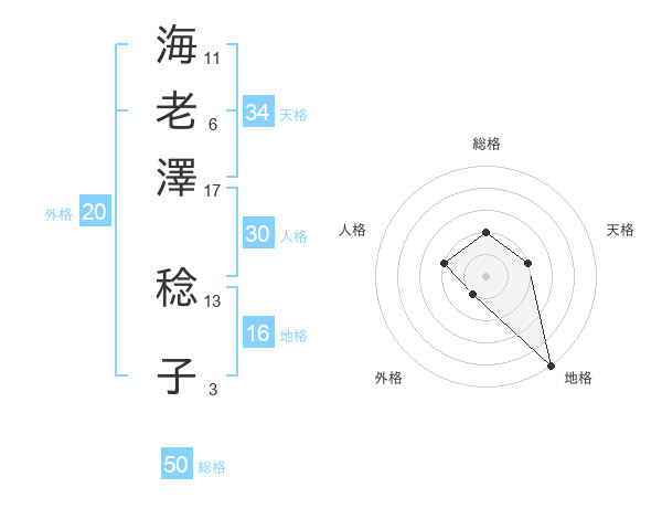 海老澤 稔子さんの総格は50画の2点!