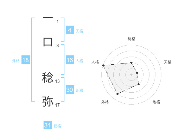 一口 稔弥さんを姓名の画数から五運を鑑定