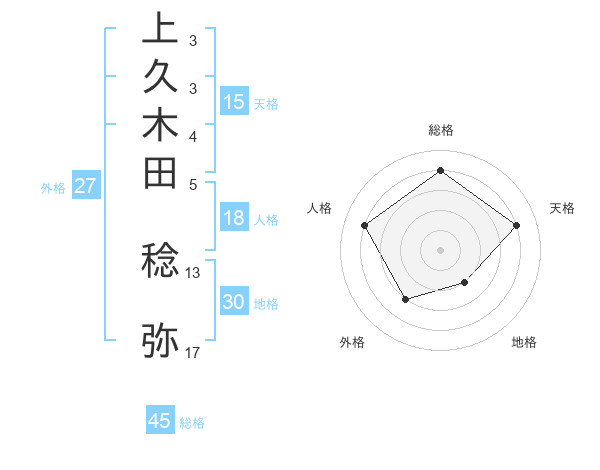 上久木田 稔弥さんを姓名の画数から五運を鑑定