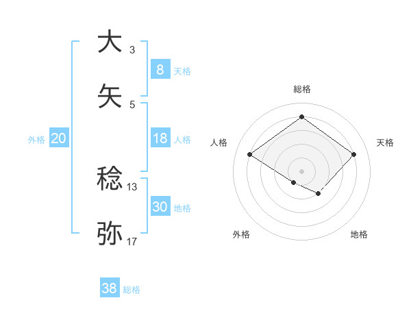 大矢 稔弥さんを姓名の画数から五運を鑑定