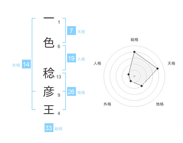 一色 稔彦王さんを姓名の画数から五運を鑑定