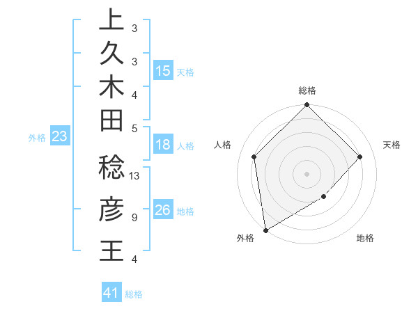 上久木田 稔彦王さんを姓名の画数から五運を鑑定