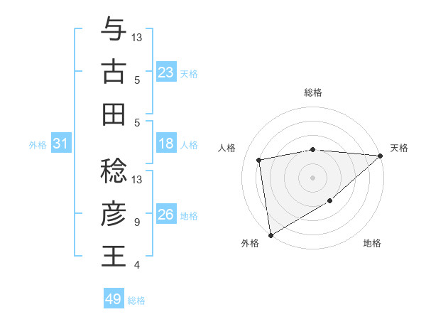 与古田 稔彦王さんを姓名の画数から五運を鑑定