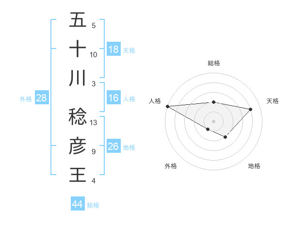 五十川 稔彦王さんを姓名の画数から五運を鑑定