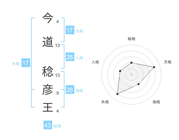 今道 稔彦王さんの天格は17画の4点!