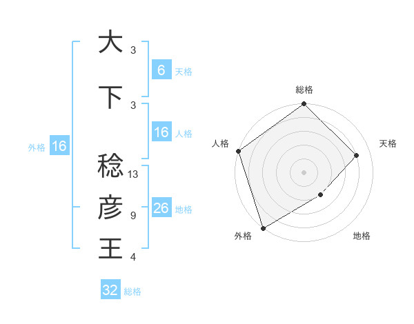 大下 稔彦王さんを姓名の画数から五運を鑑定