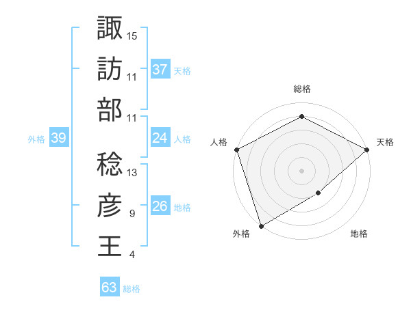 諏訪部 稔彦王さんを姓名の画数から五運を鑑定