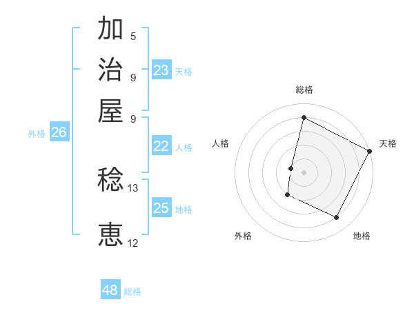 加治屋 稔恵さんを姓名の画数から五運を鑑定