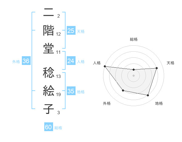 二階堂 稔絵子さんを姓名の画数から五運を鑑定