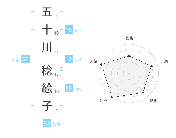 五十川 稔絵子さんを姓名の画数から五運を鑑定