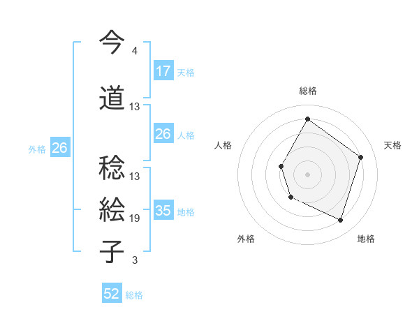 今道 稔絵子さんを姓名の画数から五運を鑑定