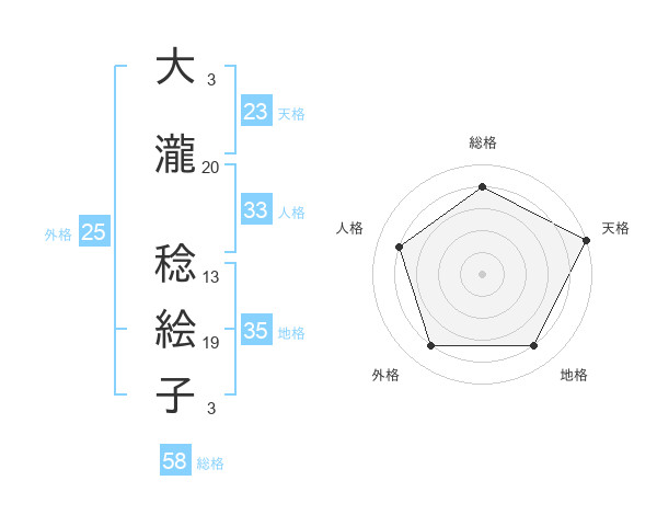 大瀧 稔絵子さんを姓名の画数から五運を鑑定
